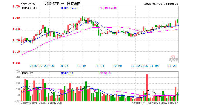 1月26日环保ETF(512580)份额减少420.00万份, 最新份额9.70亿份, 最新规模13.13亿元